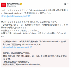 任天堂官方今日宣布,My Nintendo Store正式上架“Nintendo Switch 2(日语·国内专用)”及“Nintendo Switch 2(多语言版)”,并由此前的抽选模式转为“先到先得”的直接销售模式。