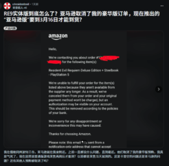 距离《生化危机9:安魂曲》发售仅剩大概两周的时间,然而,据notebookcheck报道,近日有不少玩家反馈,称自己在亚马逊预定的豪华版游戏莫名其妙被取消了订单。