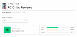今日,《高能人生2》PC版的媒体评分解禁,截至发稿前,游戏在M站PC版均分75分,共4家媒体给出具体评分,2家给出好评,2家给出中评。