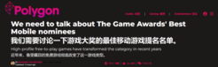 【单机】Polygon批评TGA:根本不懂游戏 明显专业性不足
