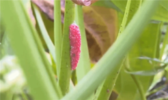 近日气温回升,多地水域中福寿螺大量冒出,其粉红色的卵块附着在水生植物茎秆上,十分醒目。