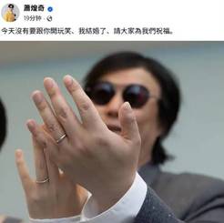 1月8日,《你是我的眼》的原唱歌手萧煌奇晒出与妻子的婚戒照片官宣结婚,“今天没有要跟你开玩笑,我结婚了,请大家为我们祝福。”照片中,萧煌奇戴着眼镜,身穿西装面带笑容,仪式感满满。