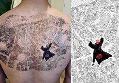 近日,一位《火影忍者》的狂热粉丝在社交媒体上引发热议——他将漫画中最具冲击力的场景之一“佩恩摧毁木叶村”完整地纹在了自己的整个后背上。