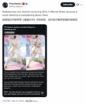X博主Pirat_Nation发帖表示,因少数玩家的强烈投诉,网易游戏已对《漫威争锋》的角色皮肤进行修改调整,这一操作被博主称为“审查”,引发玩家热议。