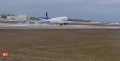 【单机】美联航一客机降落时发生弹跳 起落架轮胎直接脱落