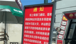 日前,多个网络视频显示,全国多地的加油站纷纷贴出告示,明确拒绝为纯电动汽车提供清洗服务,称高压水流易破坏电池包密封,进而导致进水、短路甚至起火。