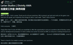 1月9日,拉瑞安工作室在外网玩家社区reddit上开启了一篇AMA(询问我们任何事)的官方问答帖。而在问答之中,几位工作室高管也向玩家们分享了《神界》当前的开发进程和部分玩法。