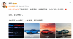 2026 年 3 月 22 日,小米集团创始人雷军通过个人社交平台发布动态,公布新一代 SU7 三款新配色的市场表现。
