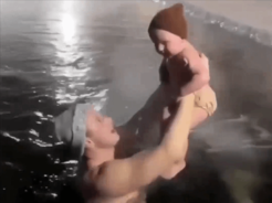 【单机】-30℃环境里 俄罗斯男子把1岁儿子3次浸入冰水