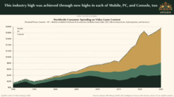 一家投资策略公司Epyllion近日公布《2026 年电子游戏现状报告》。报告显示,2025 年全球游戏内容销售总额达到 1956 亿美元(按当前汇率约合 1.35 万亿元人民币),较上一年增长 5.3%,但行业层面的私人资本投入则出现大幅回落,降幅高达 55%。