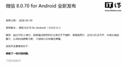 IT之家 4 月 1 日消息,微信团队 3 月 30 日发布了微信安卓 8.0.70 正式版更新,更新日志依然是“修复了一些已知问题”。