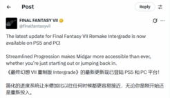 今日,《最终幻想7 重制版》官方推特确认,面向PS5/PC版推送更新补丁,正式实装此前提到的“Game Boost”功能。