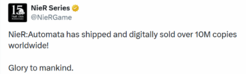 官方刚刚官宣!《尼尔:机械纪元》全球实体 + 数字总销量正式突破1000万份!