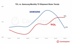 快科技2月20日消息,调研机构Counterpoint Research给出的最新报告显示,TCL超越三星,登顶2025年12月全球电视出货量榜首。