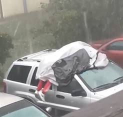 【单机】为节省修车费 美国一男子冰雹天以身护车不舍撒手