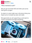 据外媒playground报道。PC装机市场又要变天了,知名硬件商PowerGPU刚刚发出了红色预警,SSD和“其他组件”的价格正在全面上涨。官方话说得很直白:“现在库存里的这点货,就是最后的平价粮,卖完这批,下周直接涨价。”