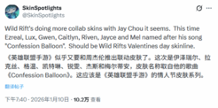 X平台上一位专注于挖掘《英雄联盟》数据和消息的用户发布爆料,称《英雄联盟手游》将再次与周杰伦进行合作,推出“告白气球”系列皮肤。