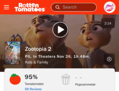 迪士尼2016年推出的《疯狂动物城》全球票房曾突破10亿美元,绝对是迪士尼的爆款电影,如今该片续作于今日正式上映,依然延续了前作出色的口碑。《疯狂动物城2》在烂番茄网站最高获得了95%的媒体好评率,是自2021年以来迪士尼动画工作室的最高分。