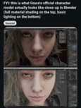 近日,关于DLSS5.0的争议极多,其中DLSS5.0的支持者认为,DLSS5.0只是改变了光照和纹理细节,没有改变角色的五官。而反对者则觉得这就是恶心人的AI垃圾。外网博主@NeonSlice就是其中一位反对者,他在推特上发布了格蕾丝的体模在软件当中的真实形象。并且怒喷