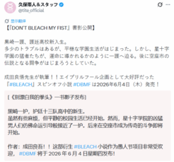 今日,《BLEACH 死神》作者久保带人正式宣布,此前在愚人节企划中大火的校园恶搞篇章,如今正式推出衍生小说《DON’T BLEACH MY FIST》,新作定档2026年6月4日发售,由《无头骑士异闻录》、《Fate/strange Fake》等作品的作者成田良悟执笔。