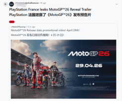 【单机】外网曝PlayStation法国账号误放宣传片 《摩托GP 26》确认4月29日发售
