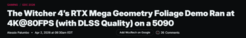 【单机】《巫师4》新技术演示曝光!5090跑4K/80帧