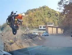 【单机】现实版"飞驰人生"?一女摩友骑车飞下山坡幸无大碍