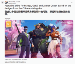 reddit守望先锋板块有玩家爆料,游戏推出了以中式恋爱模拟为设计灵感的新皮肤,涉及英雄毛加、源氏以及渣客女王。有玩家根据微博相关消息表示,这批皮肤基本确定为中国地区限定。