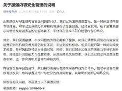 4 月 14 日消息,因被央视曝光存在 AI 生成内容涉黄擦边漏洞,哩布哩布 AI 发布《关于加强内容安全管理的说明》,就平台问题公开致歉并宣布启动专项整改。