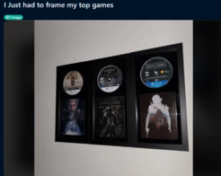 近日,Reddit论坛PlayStation社区一位玩家晒出了其独特的游戏收藏方式引发玩家热议。这位玩家将最喜爱的三款游戏,连同光盘盒包装艺术图一起裱了起来。