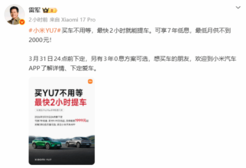 今日,雷军在微博上正式宣布,小米YU7买车不用等,最快2小时就能提车。