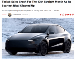 【单机】特斯拉在欧洲彻底不香了 1月销量不到比亚迪的一半