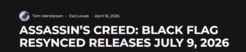 据外媒Insider Gaming主编,知名爆料人、业内人士Tom Henderson亲自下场发文爆料,《刺客信条:黑旗》重制版将于2026年7月9日正式发售。