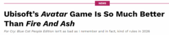 近日,外媒Kotaku发文锐评《阿凡达》系列第三部电影《阿凡达:火与烬》,并直言不讳地表示,如今育碧的开放世界游戏《阿凡达:潘多拉边境》在体验上“比这部电影要好太多”。