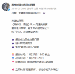 【单机】景区开启《黑神话》Boss竞速挑战赛 报名即可免门票