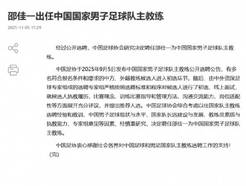 【单机】中国足协官宣:邵佳一出任中国男足国家队新任主教练