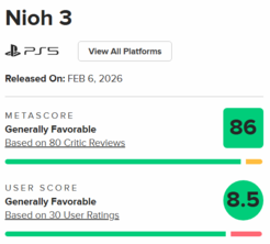 今日,《仁王3》M站玩家评分解禁,截至发稿前,玩家评分为8.5分,整体反馈相当积极。