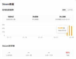 2026 年 2 月 7 日,数据显示,Team Ninja 开发的黑暗战国动作 RPG《仁王 3》在 Steam 平台的热度持续攀升,24 小时峰值与历史峰值均达到 84948 人,这一成绩刷新了系列在 Steam 平台的在线纪录。